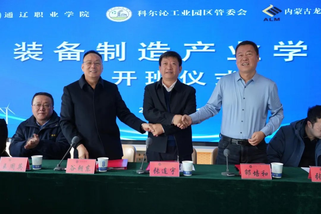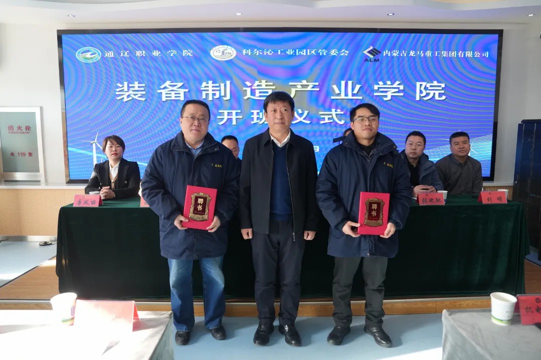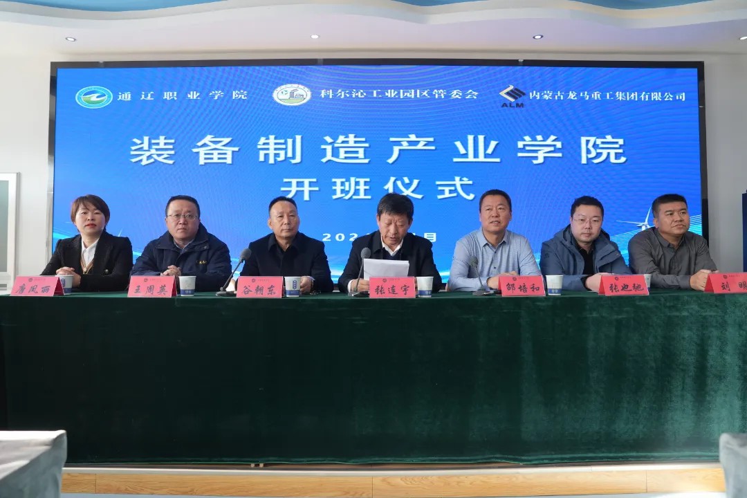 11月29日上午,裝備制造產(chǎn)業(yè)學(xué)院“龍馬重工”訂單班開班儀式順利舉行。內(nèi)蒙古龍馬重工集團(tuán)有限公司副總經(jīng)理谷朝東,科爾沁工業(yè)園區(qū)黨工委副書記、管委會(huì)副主任邵培和,通遼職業(yè)學(xué)院黨委副書記張連宇出席。